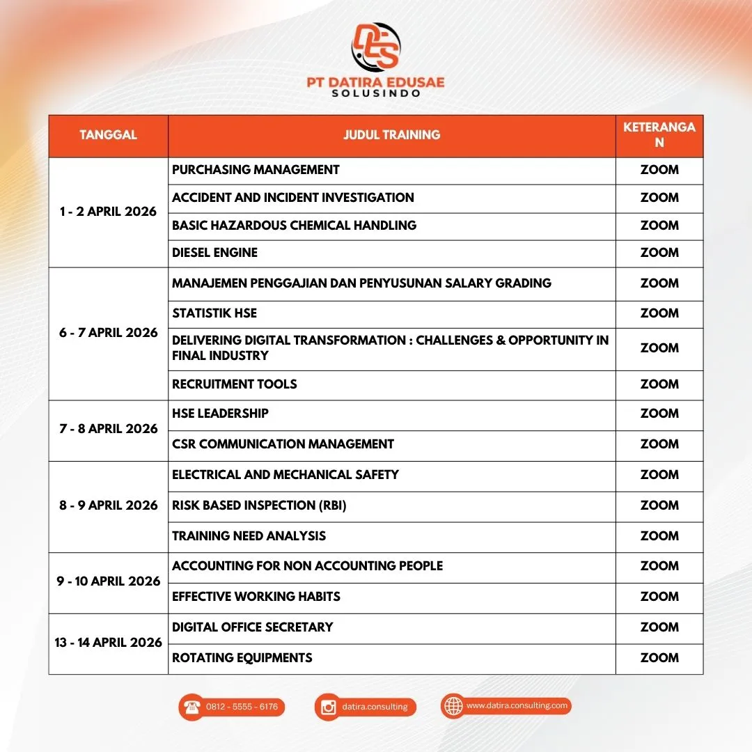 Jelajahi program pelatihan dan sertifikasi BNSP lainnya dari Datira. Temukan jadwal pelatihan yang sesuai dengan kebutuhan Anda untuk terus mengembangkan kompetensi dan meningkatkan profesionalisme.
